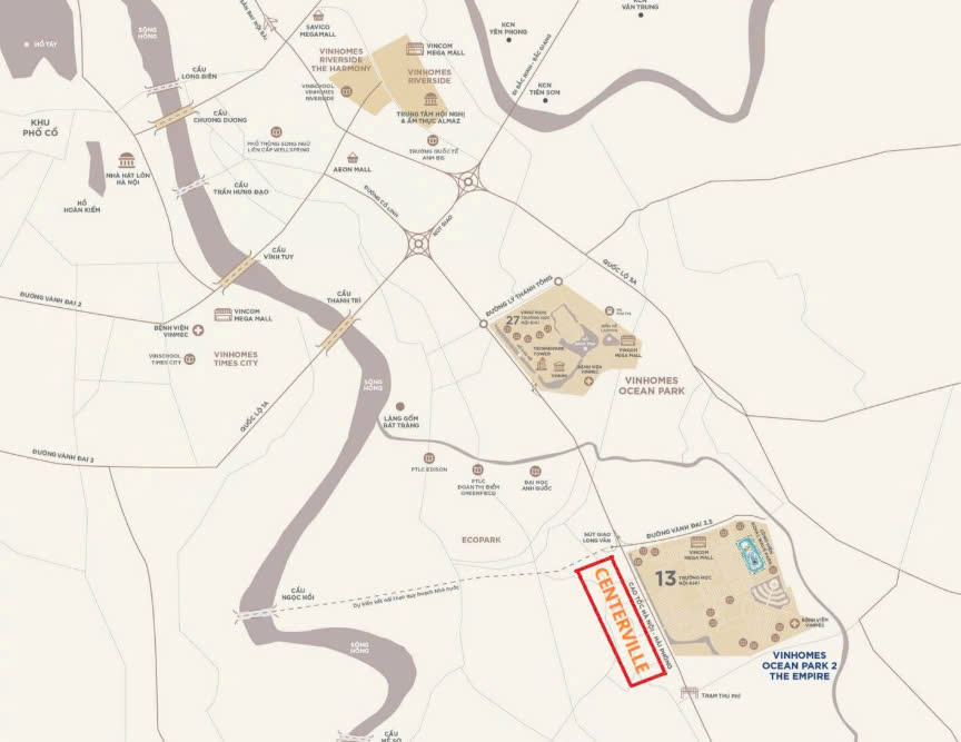 Centerville còn tiếp giáp cao tốc Hà Nội – Hải Phòng, cách trung tâm Thủ đô chưa đầy 20km, mở ra khả năng liên kết vùng linh hoạt, di chuyển nhanh chóng tới mọi khu vực trọng điểm của Hà Nội và các tỉnh lân cận.